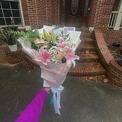 This product includes 24 long stems, with the choice option of (PINK RED OR WHITE ROSES FOR FREE) baby breaths, 5 Lily's and greenery The Add ons include, Love note , butterflies, and designer wrapping paper that will highlight your luxury arrangement
